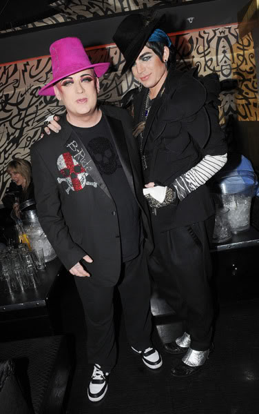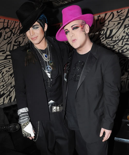 BOY George poses with American Idol runner-up Adam Lambert as the ex-Culture Club singer films his new reality show….