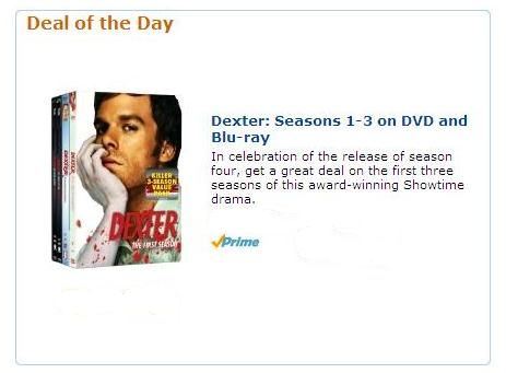 Well, the Dexter: Seasons One - Three DVD ($48.99) and Blu-ray ($69.99) is the Amazon GoldBox Deal of the Day! The discount is 60% OFF!