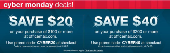 Oh hey, OfficeMax is offering $20 and $40 OFF Codes for Cyber Monday!