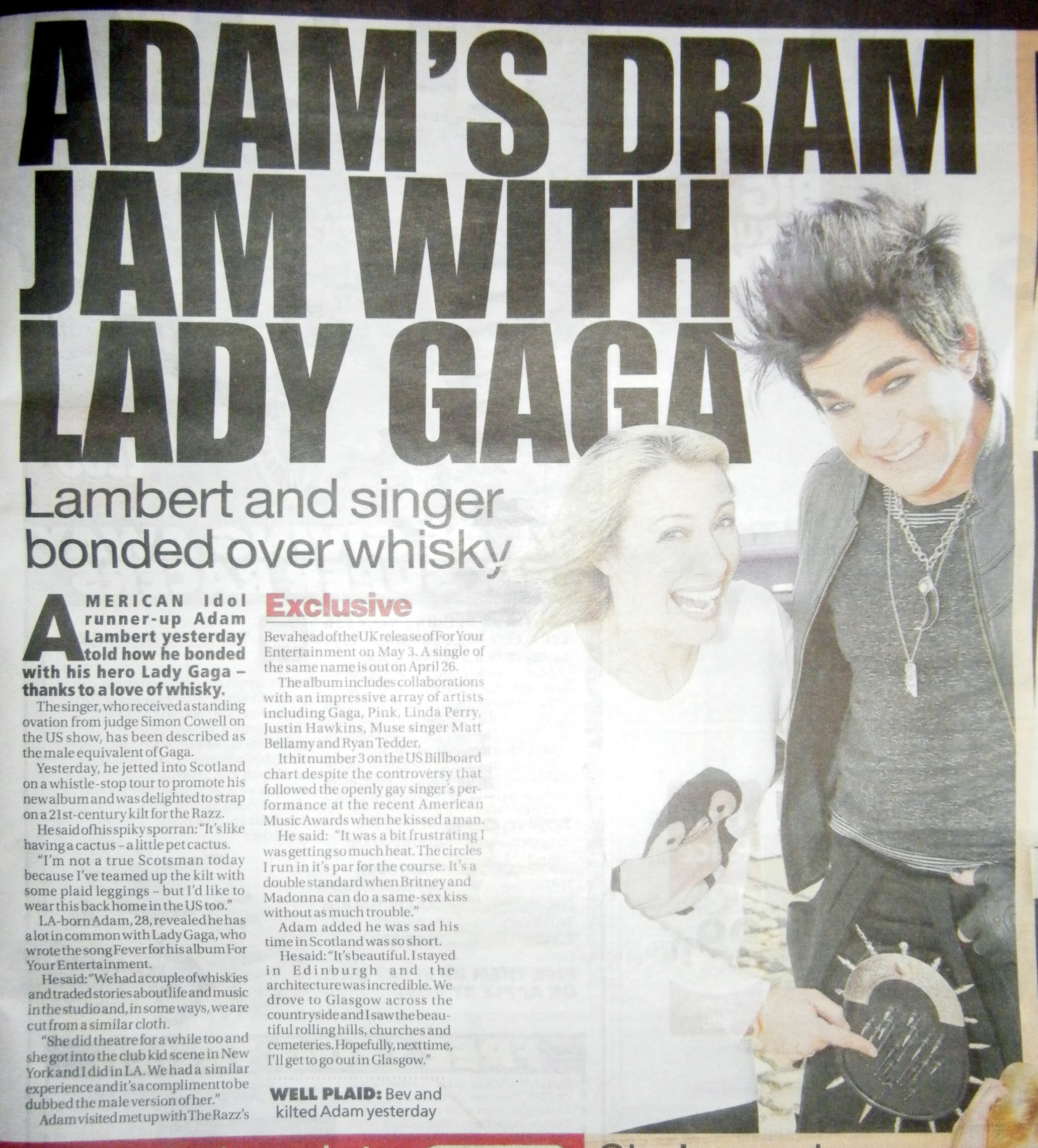 Whisky helped bring me together with Lady Gaga, reveals American Idol star Adam Lambert (Daily Record)