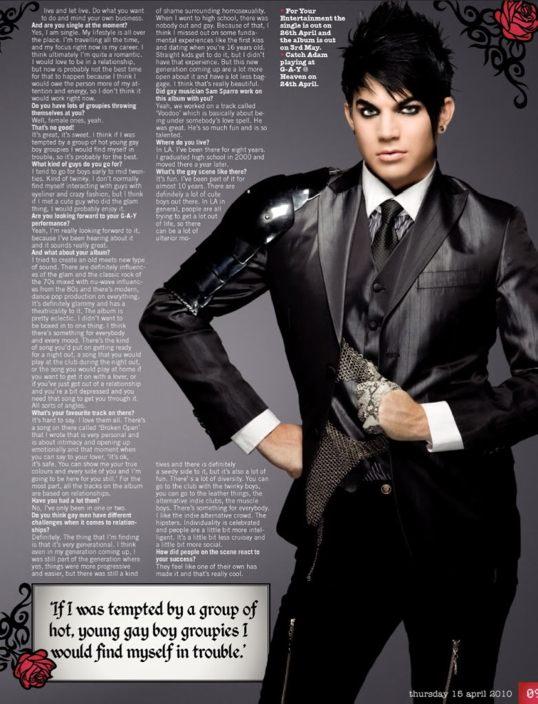 * Check out Adam on the cover of OUT May 10 issue! (Magazine is online!)